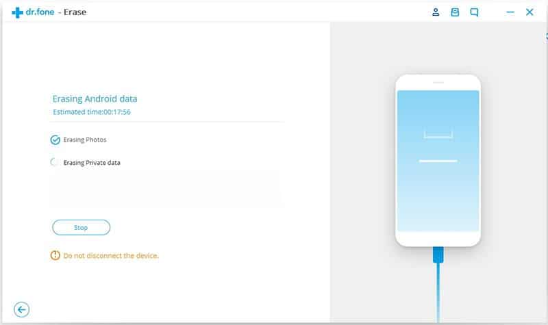 Now, Android Data Erase will start erasing all data from your Android device. Just wait for few minutes and all data on your Android phone will get erased permanently. Make sure that your device is connected to your computer until and unless the process complete.
