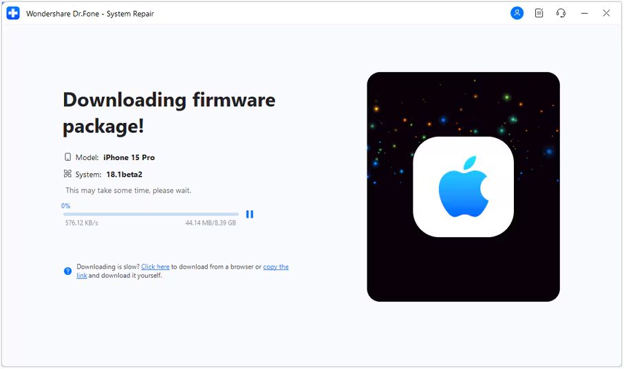Step 7: The iOS firmware will automatically start downloading on the platform.