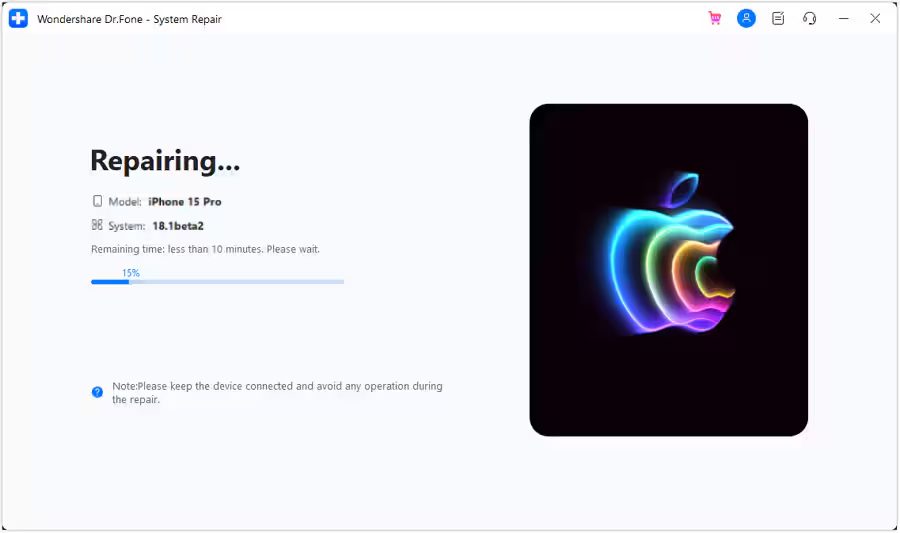 Step 9: Now, wait for the process to complete and make sure your iOS device is connected to the computer.
