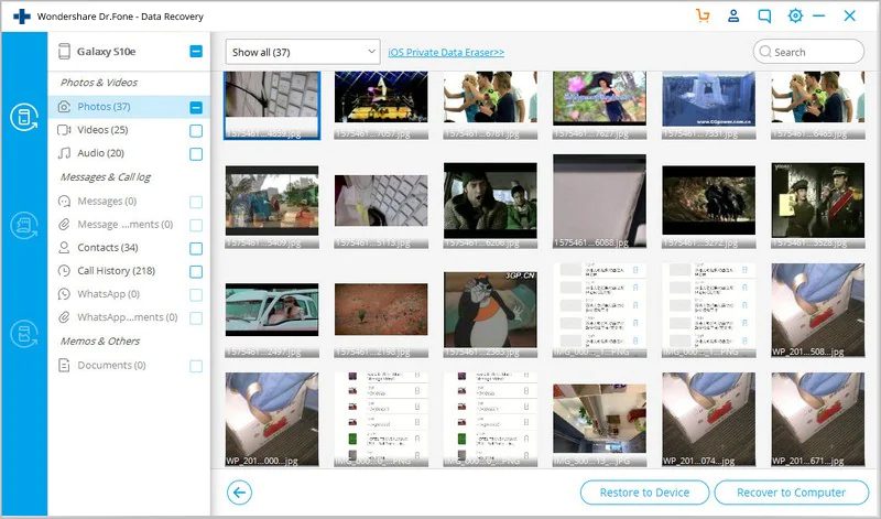 Once the analyzing and scanning process completes, Android Data Recovery will show all the file types by categories. After this you can preview the recoverable files types within preview screen of the program. Select the files that you want back and then click on Restore to Device or Recover to Computer to recover data from broken Android phone.